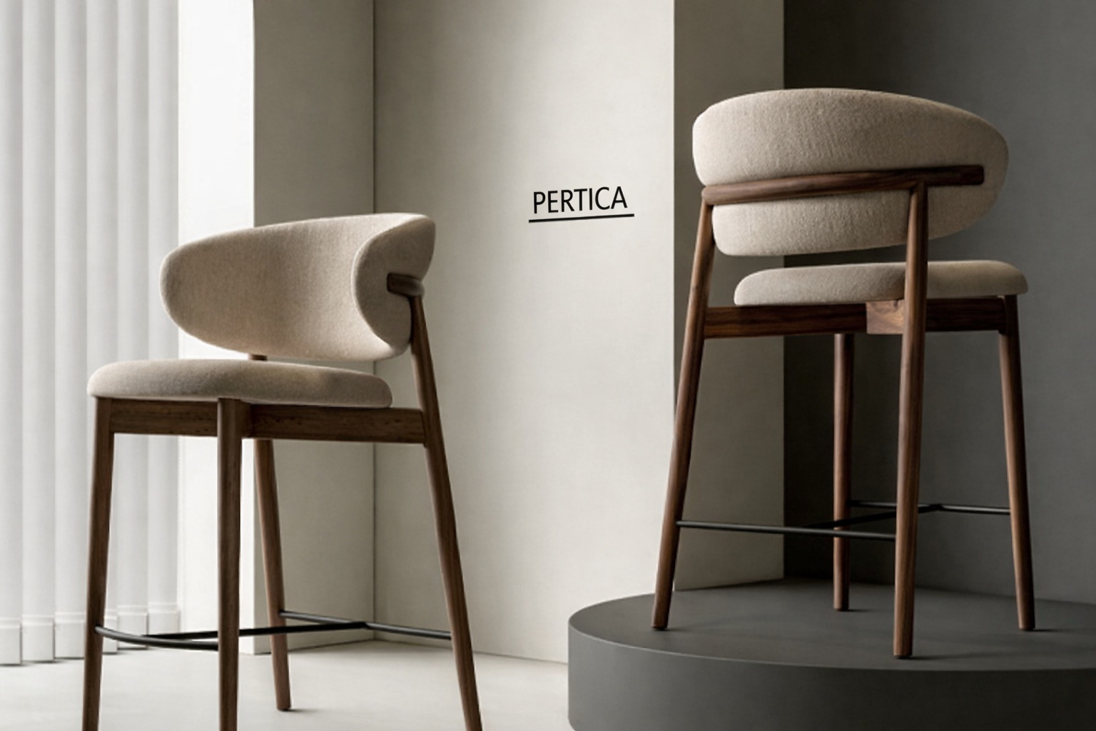 意式极简原木质感高端吧台椅